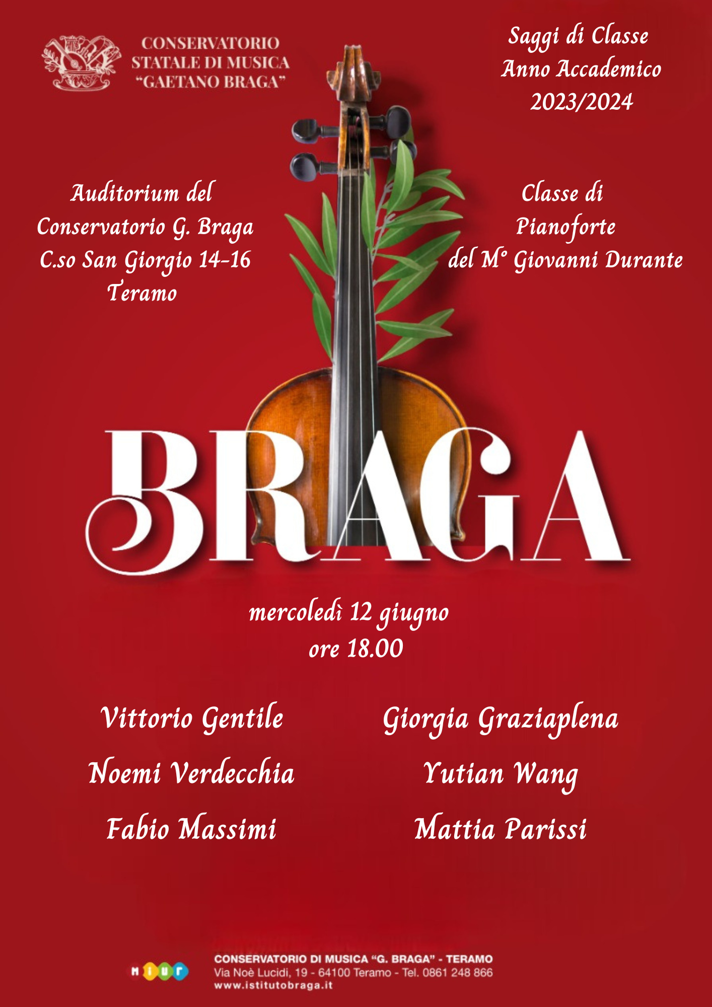 Premio Nazionale delle Arti : Conservatorio G.Braga "Musica da camera e d'insieme"